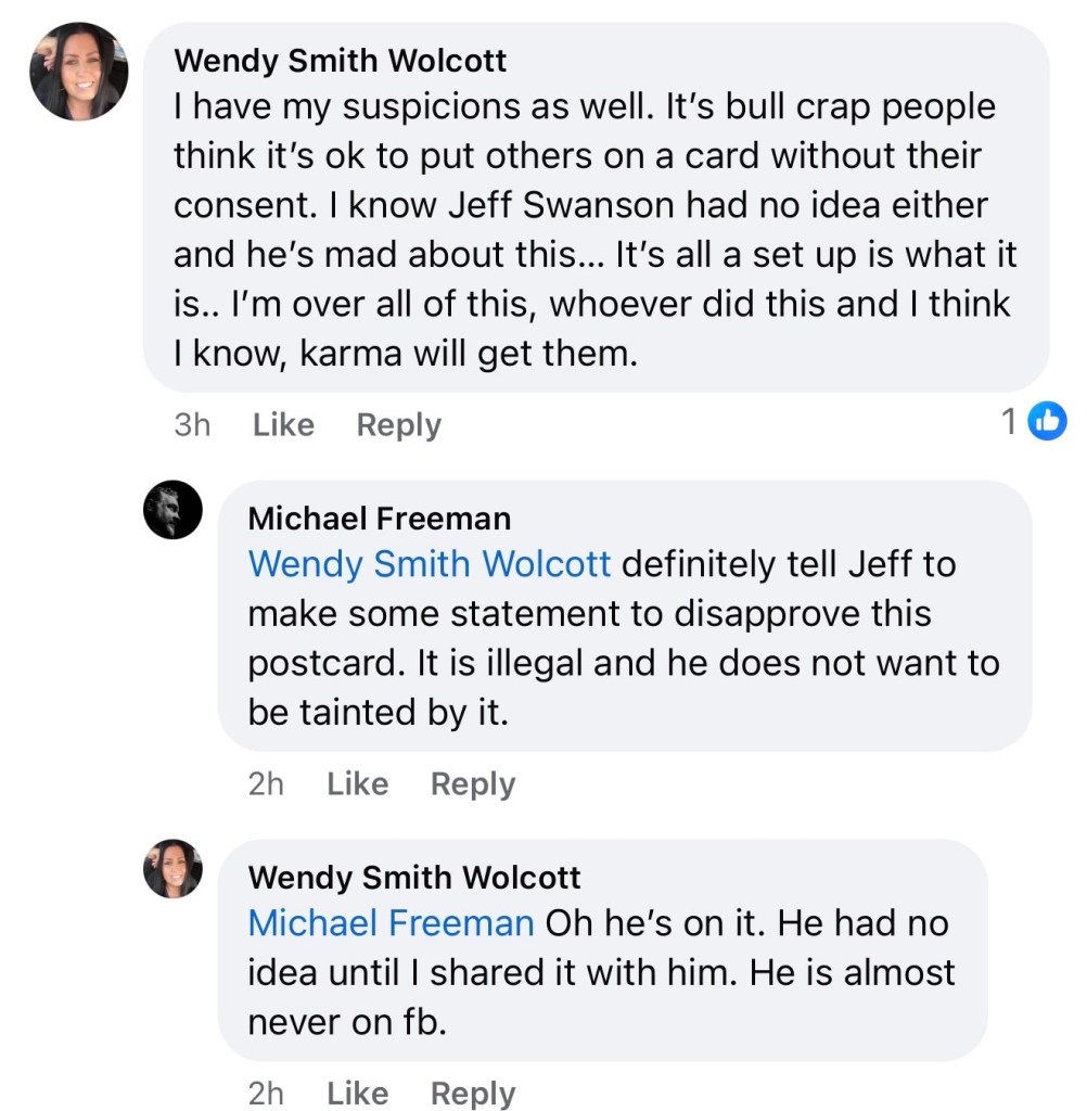 Incidentally, Swanson and Wolcott both put out lukewarm statements distancing themselves from that mailer, but both are also clearly benefitting from it.