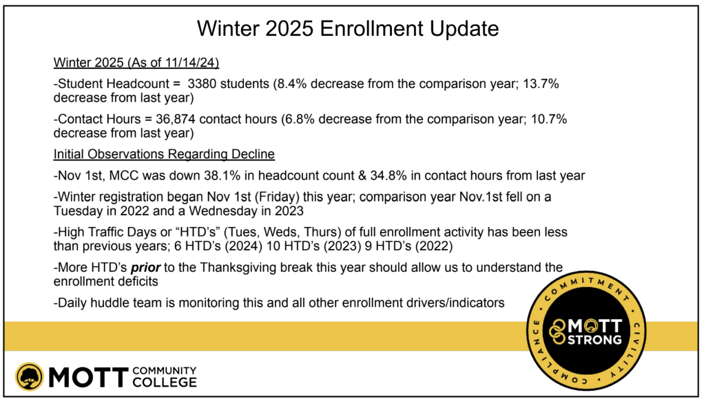 Mott Community College’s Winter Enrollment is Down, and it is Unclear if its Board is Even Aware